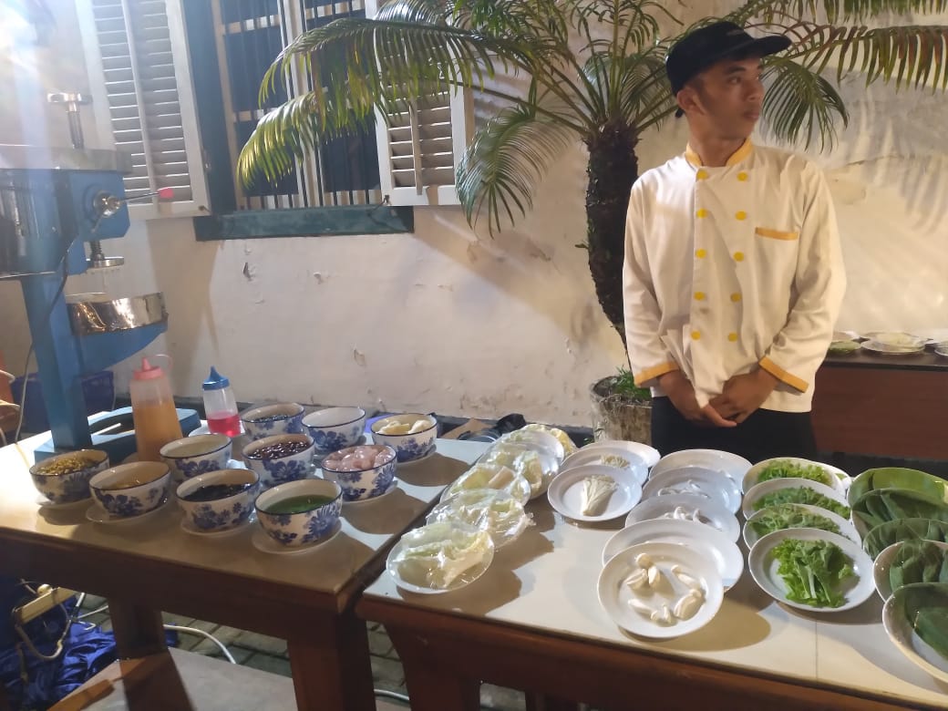 “Orang sekarang lebih suka makanan yang bisa mereka lihat prosesnya,” ujar Rayhan Syahbudiman, Marketing Communication Swiss Belhotel Pangkalpinang, sembari membalik daging di atas pemanggang, Jumat (17/10/2025) malam.