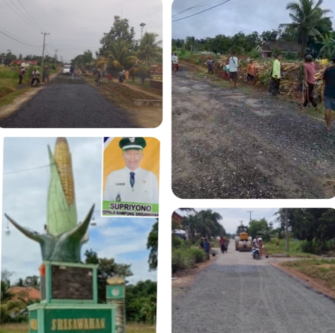 Ibarat mendapat Durian runtuh, kususnya warga Dusun 3 mulai dari Tugu Jagung sampai Dusun Sri Tunggal badan jalan 3 M dengan panjang 1,22 M, dapat di bangun menjadi Lapen yang biaya keseluruhanya di tanggung oleh Donatur (Warga),untuk itu kita pemuda kusus meng Apresias dengan di koordinir Pemerintahan Kampung kita bergotong royong memperbaiki badan jalan yang di maksud semoga amal baik warga yang menjadi Donatur Allah Swt, balas dengan menjadikan Amal Jariah pungkas nya.