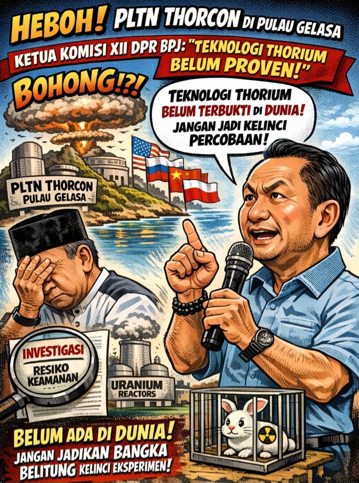 PANGKALPINANG – Rencana pembangunan Pembangkit Listrik Tenaga Nuklir (PLTN) berbasis thorium di Pulau Gelasa, Kabupaten Bangka Tengah, kembali menuai sorotan. Ketua Komisi XII DPR RI Bambang Pati Jaya mempertanyakan kesiapan teknologi yang akan digunakan dalam proyek tersebut.