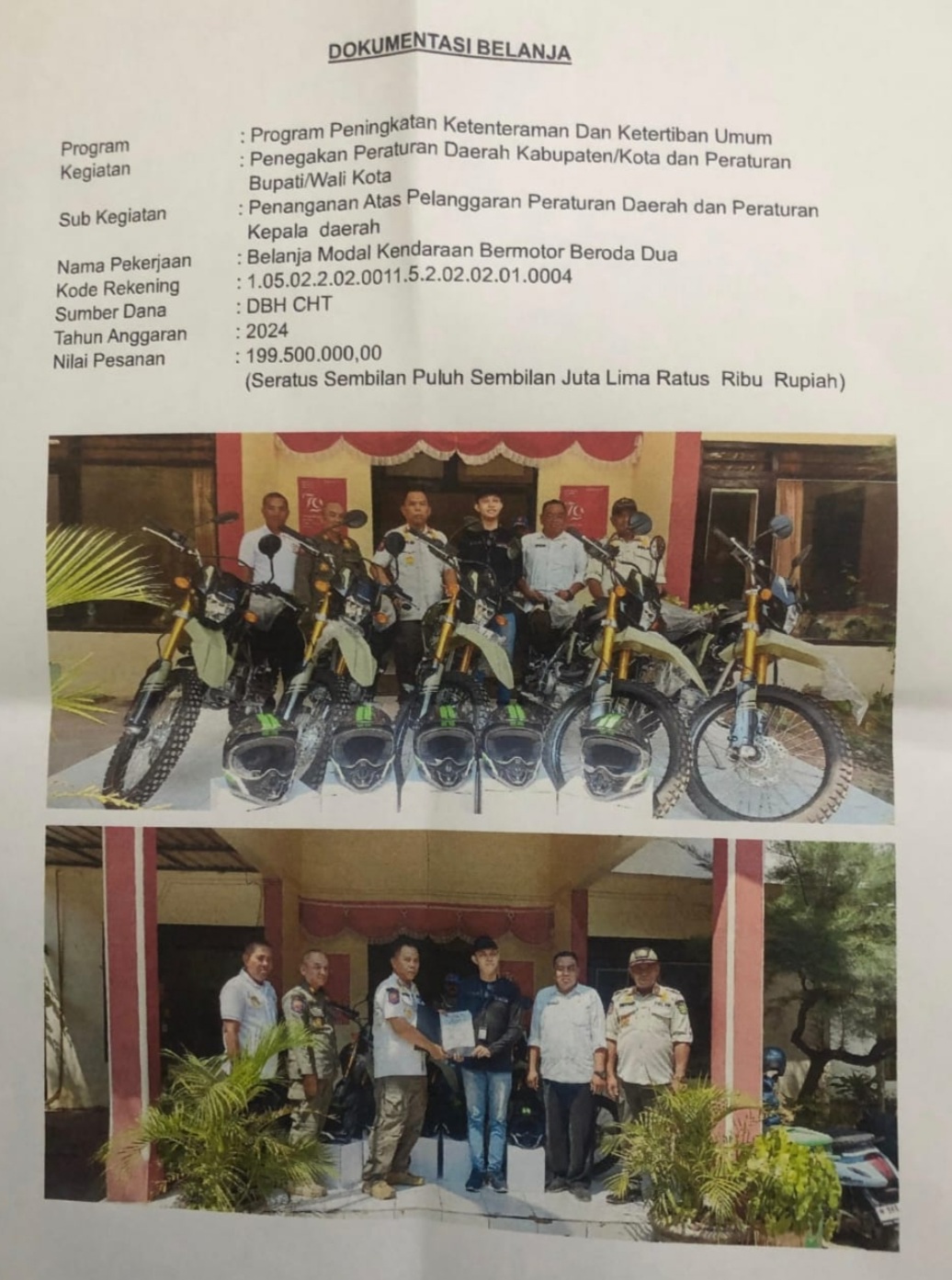SUMENEP – Drama pembuktian aset Barang Milik Daerah (BMD) terjadi di Kantor Satpol PP Kabupaten Sumenep. Saat dikonfirmasi media terkait keberadaan 4 unit motor trail senilai Rp 222 juta dari APBD 2024, Kepala Bidang Penegakan Peraturan Daerah dan Sumber Daya Aparatur Satpol PP, Nurus, hanya menunjukkan selembar kertas bergambar motor trail sebagai “bukti.”