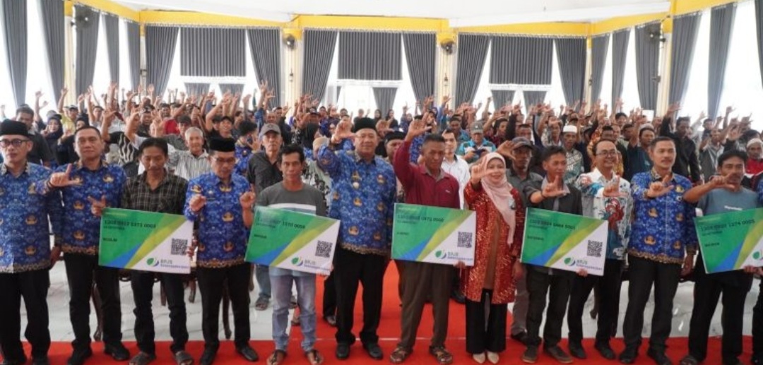 LANGKAT – Bupati Langkat H. Syah Afandin, SH dan Kepala BPJS Stabat Langkat Sugianto serahkan Kartu Pekerja Rentan BPJS Ketenagakerjaan kepada 4000 Nelayan di Kabupaten Langkat. Penyerahan tersebut berlangsung di Jentera Malay Rumah Dinas Bupati Langkat, Senin (22/12/2025).