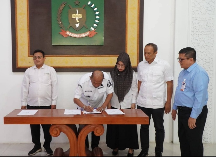 Penandatanganan dilakukan oleh Kepala Badan Pendapatan Daerah Kabupaten Langkat Dra. Mulyani S selaku pihak pertama dan Kepala Kantor Pertanahan Kabupaten Langkat Akyar Sirajuddin selaku pihak kedua, serta disaksikan langsung oleh Bupati Langkat.