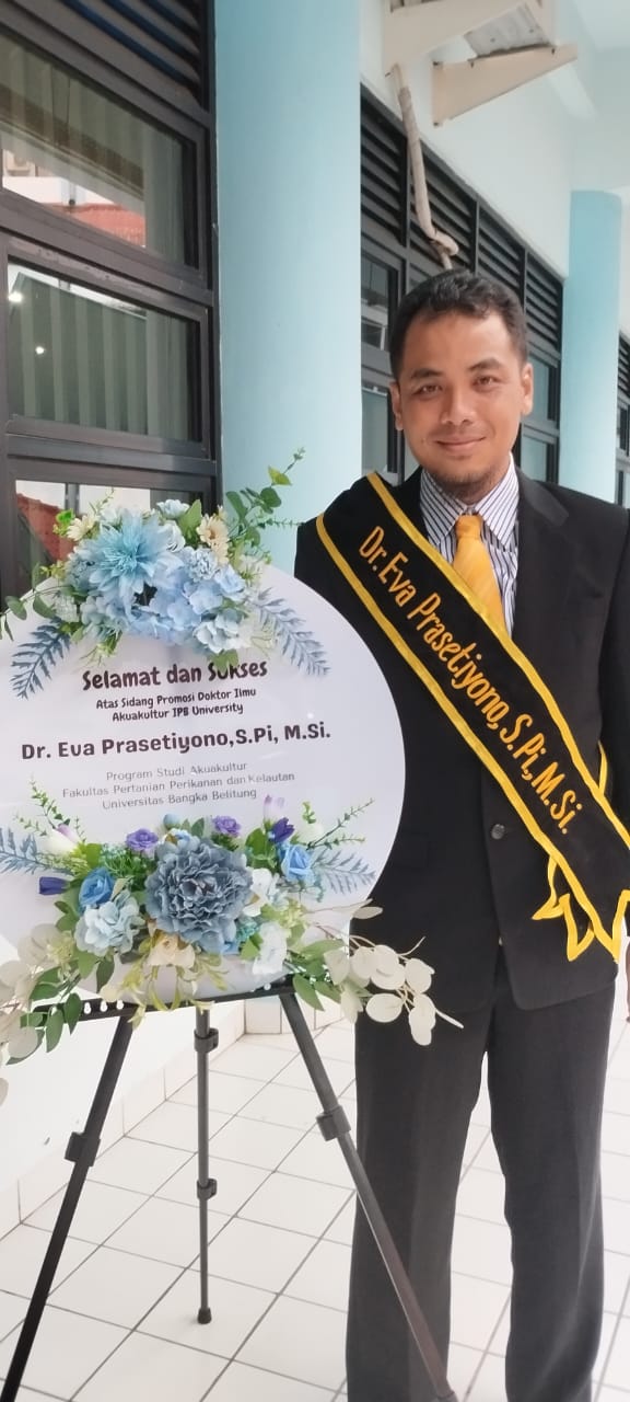 BANGKA – Eva Prasetiyono, dosen Program Studi Akuakultur di Fakultas Pertanian, Perikanan, dan Kelautan Universitas Bangka Belitung (UBB), resmi menyandang gelar doktor dalam bidang Ilmu Akuakultur dari Institut Pertanian Bogor (IPB). Gelar ini diperoleh usai melewati sidang promosi doktor yang digelar pada Rabu, 30 April 2025.