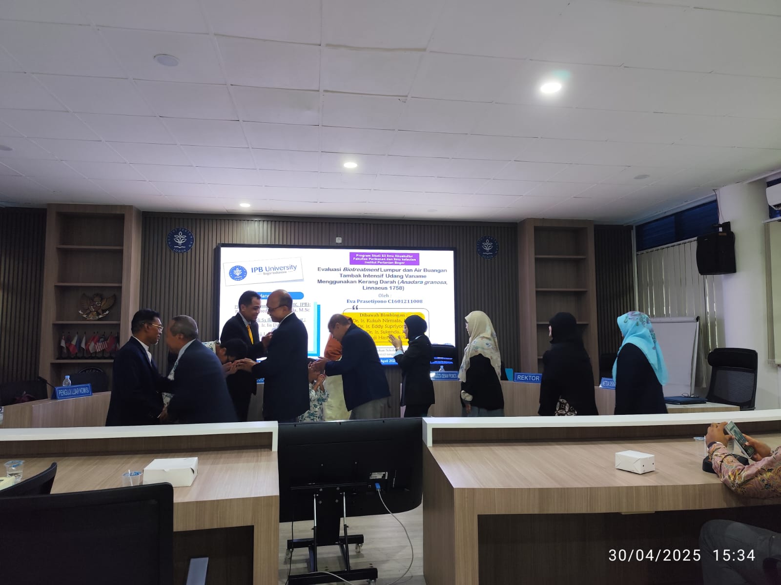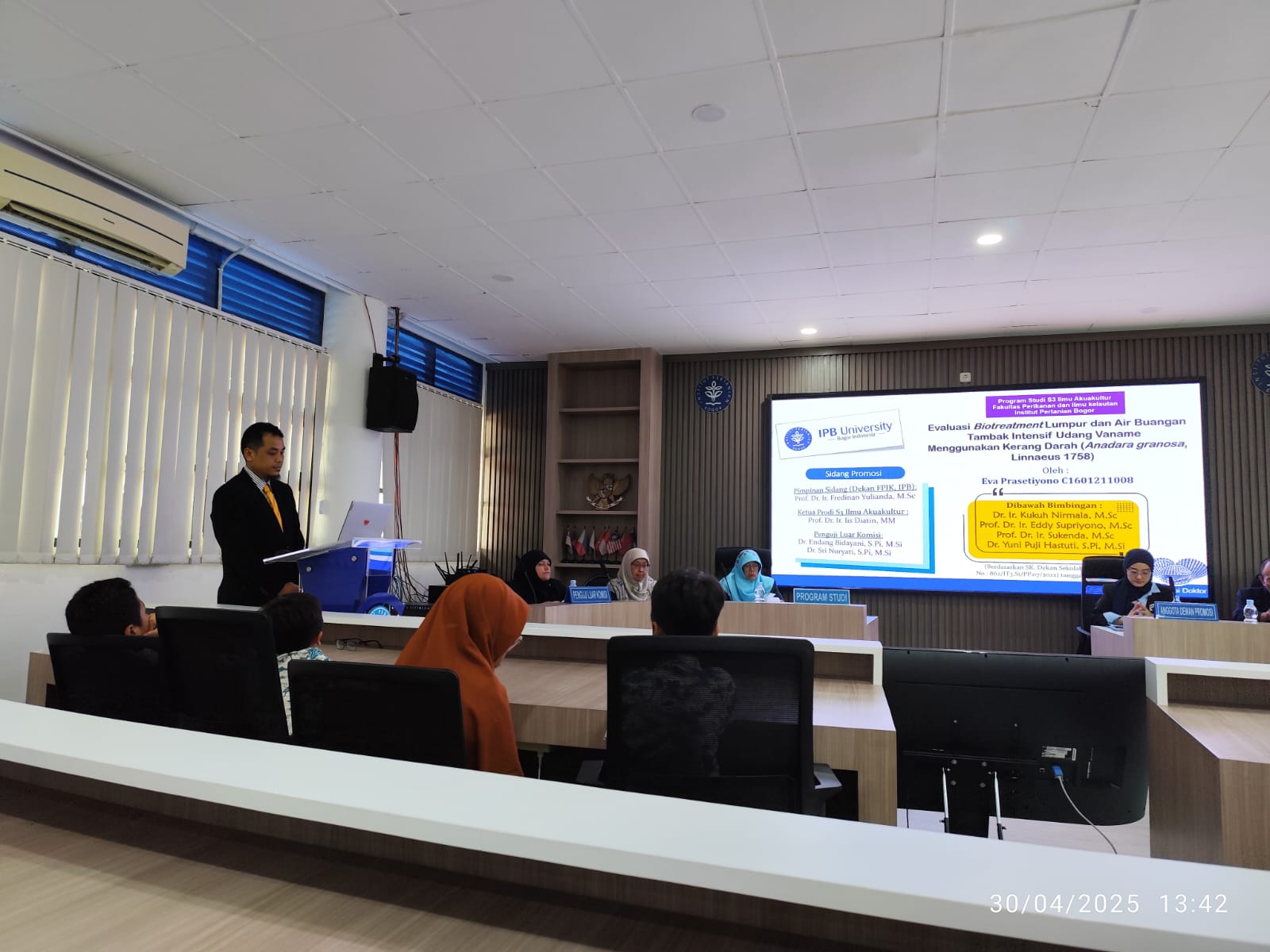 Dalam disertasinya, Eva meneliti strategi biotreatment limbah tambak udang menggunakan kerang darah (Anadara granosa). Penelitian ini dinilai relevan dalam mendukung pengelolaan lingkungan budidaya perairan secara berkelanjutan.