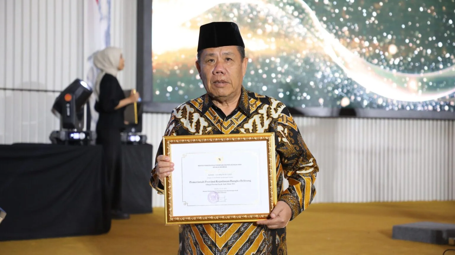 PANGKALPINANG – Gubernur Kepulauan Bangka Belitung (Babel) Hidayat Arsani menerima penghargaan Provinsi Layak Anak (Provila) pada Malam Penganugerahan Kabupaten/Kota Layak Anak (KLA) Tahun 2025 yang digelar Kementerian Pemberdayaan Perempuan dan Perlindungan Anak (KPPPA) RI.