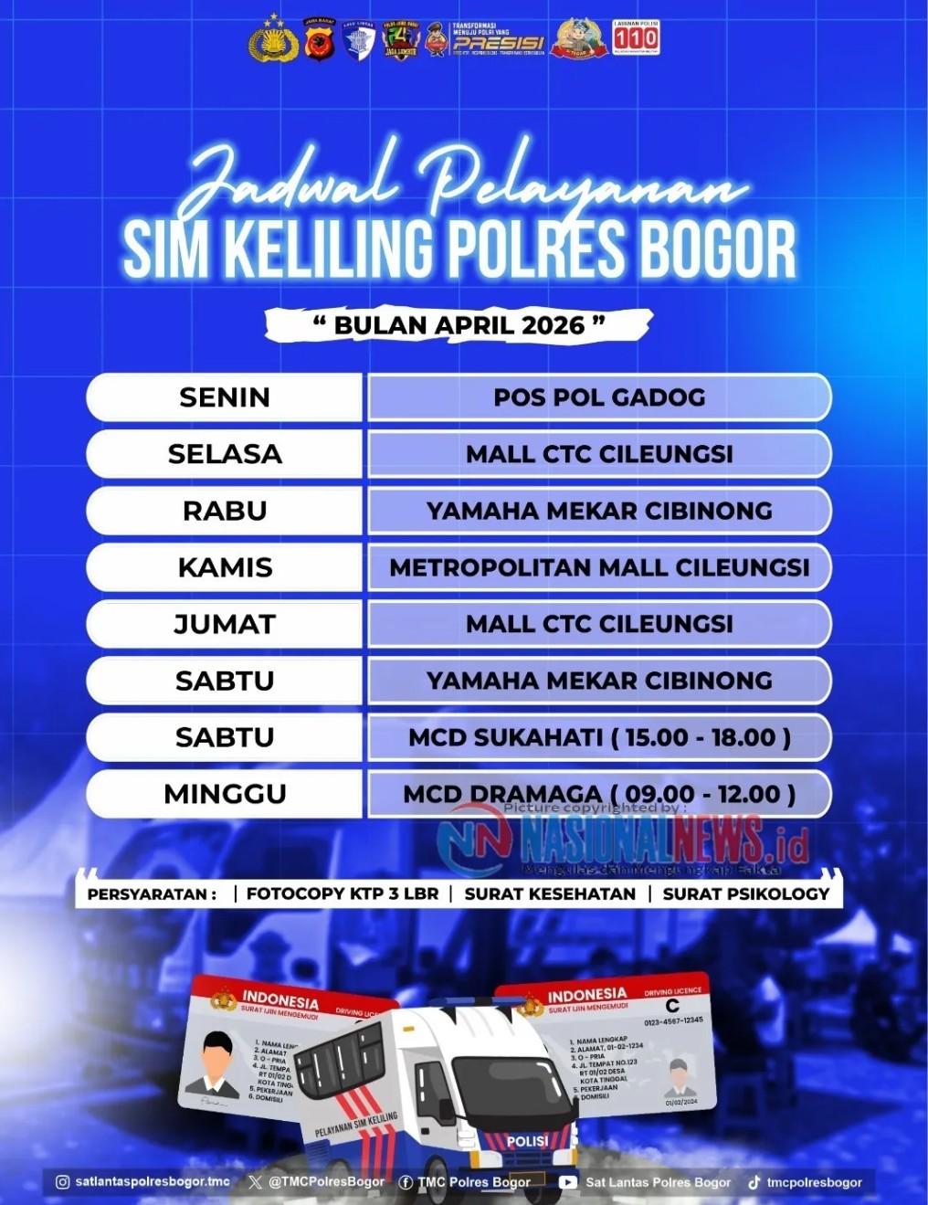 Berikut jadwal SIM Keliling Bulan April 2026 di wilayah Kabupaten Bogor :
