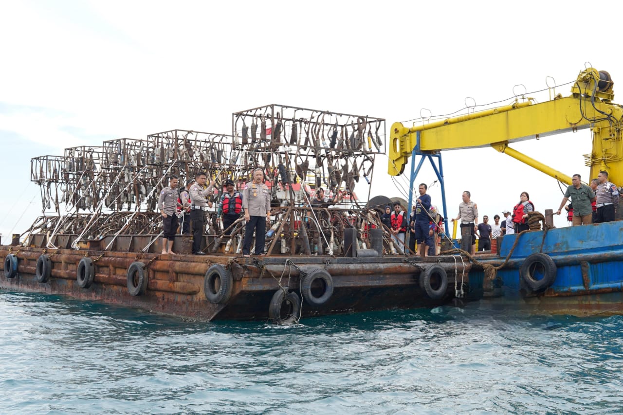 Dirlantas Kombes Pol Pringadhi mengatakan ada sebanyak 5 rumpon yang dilepaskan diperairan Rebo ini hasil penertiban yang dilakukan jajarannya.