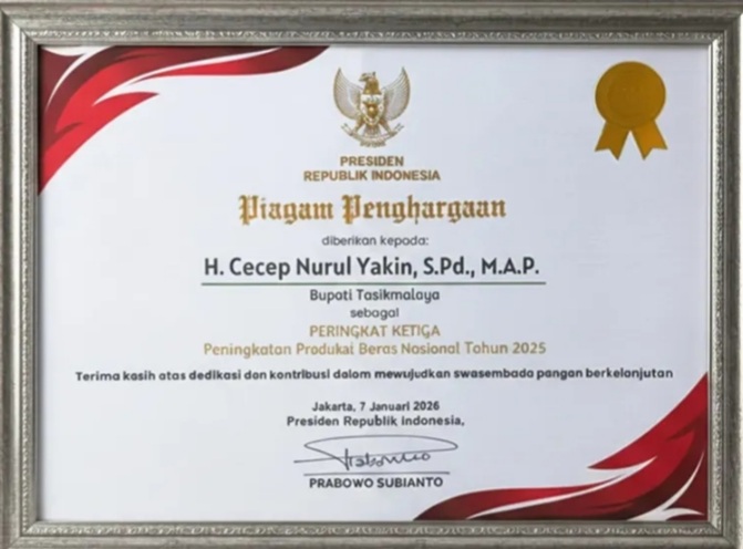 Prestasi ini diharapkan menjadi motivasi untuk terus meningkatkan hasil pertanian sekaligus memperkuat kesejahteraan petani di Kabupaten Tasikmalaya ke depan.