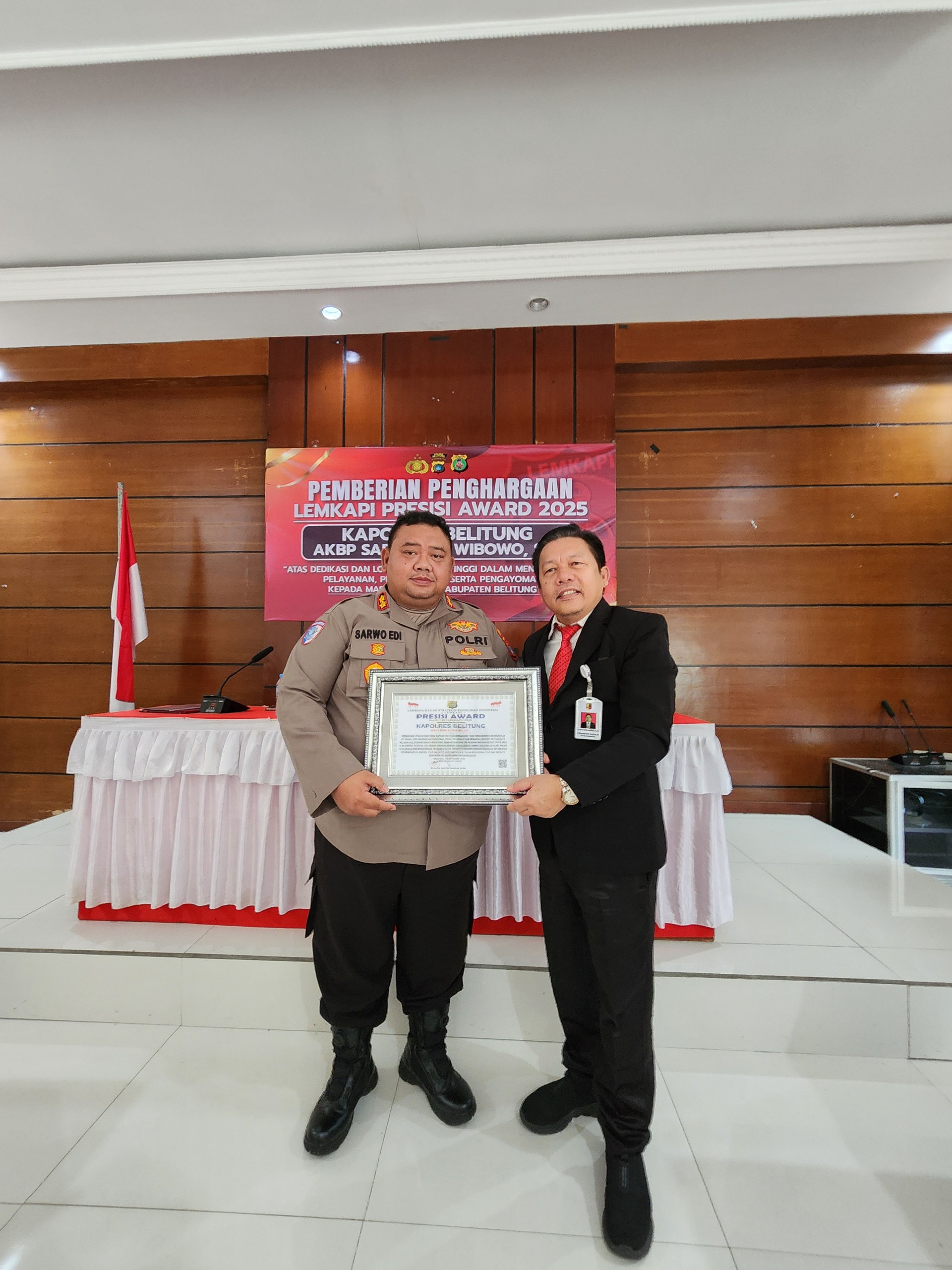 Dari informasi yang diterima, penganugerahan ini diserahkan langsung oleh Direktur Eksekutif Lemkapi Dr. Edi S Hasibuan di Mapolres Belitung pada Senin (10/11/25).