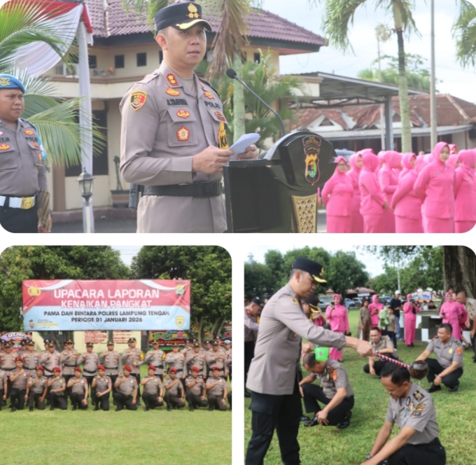 Kapolres Lampung Tengah, Polda Lampung, AKBP Alsyahendra, S.I.K., M.H., memimpin langsung upacara Korp Raport kenaikan pangkat bagi personel perwira dan bintara Polres Lampung Tengah.