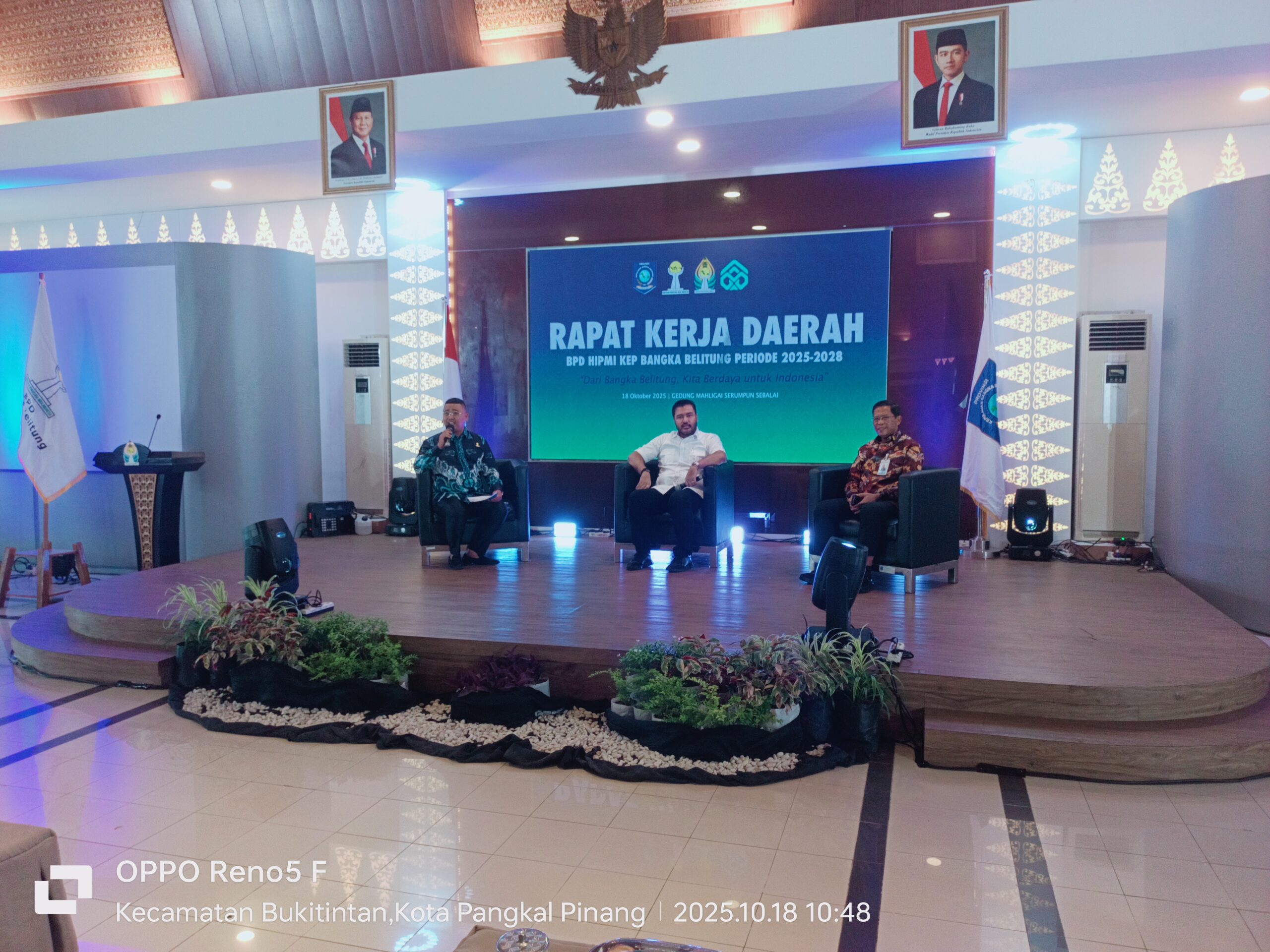 Foto: Harwendro Adityo Dewanto saat jadi pembicara di Forum Bisnis Rapat Kerja Daerah (Rakerda) BPD HIPMI Kepulauan Bangka Belitung periode 2025–2028 di Gedung Mahligai Serumpun Sebalai Pangkalpinag, 18 Oktober 2025.