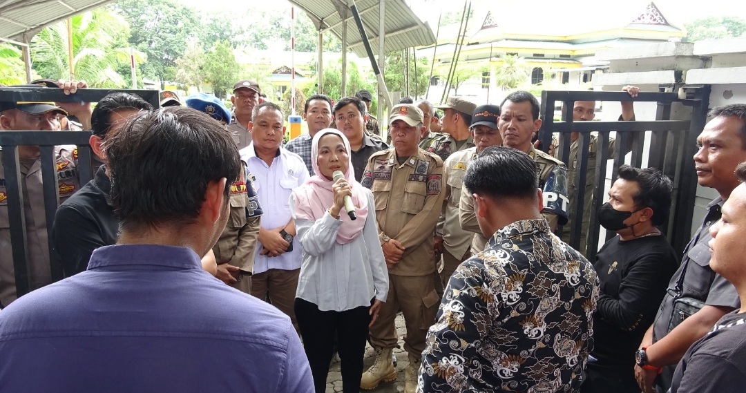 Aksi yang berlangsung tertib itu kemudian diterima langsung oleh Ketua DPRD Langkat, Sribana Perangin Angin, bersama Kepala Badan Narkotika Nasional (BNN) Kabupaten Langkat di depan gerbang gedung DPRD. Keduanya mengajak massa berdialog dan mendengarkan aspirasi yang disampaikan mahasiswa.