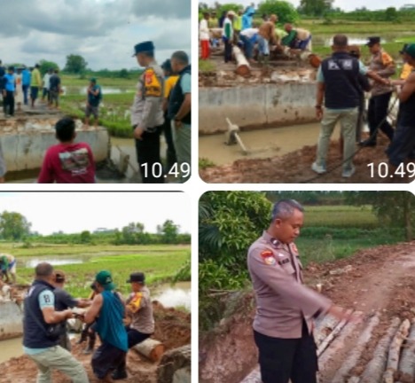 Namun, kondisi itu tidak berlangsung lama. Dengan sigap, personel Bhabinkamtibmas Polsek Seputih Banyak Polres Lampung Tengah turun langsung ke lokasi, mengajak aparatur kampung serta masyarakat untuk bersama-sama melakukan perbaikan.