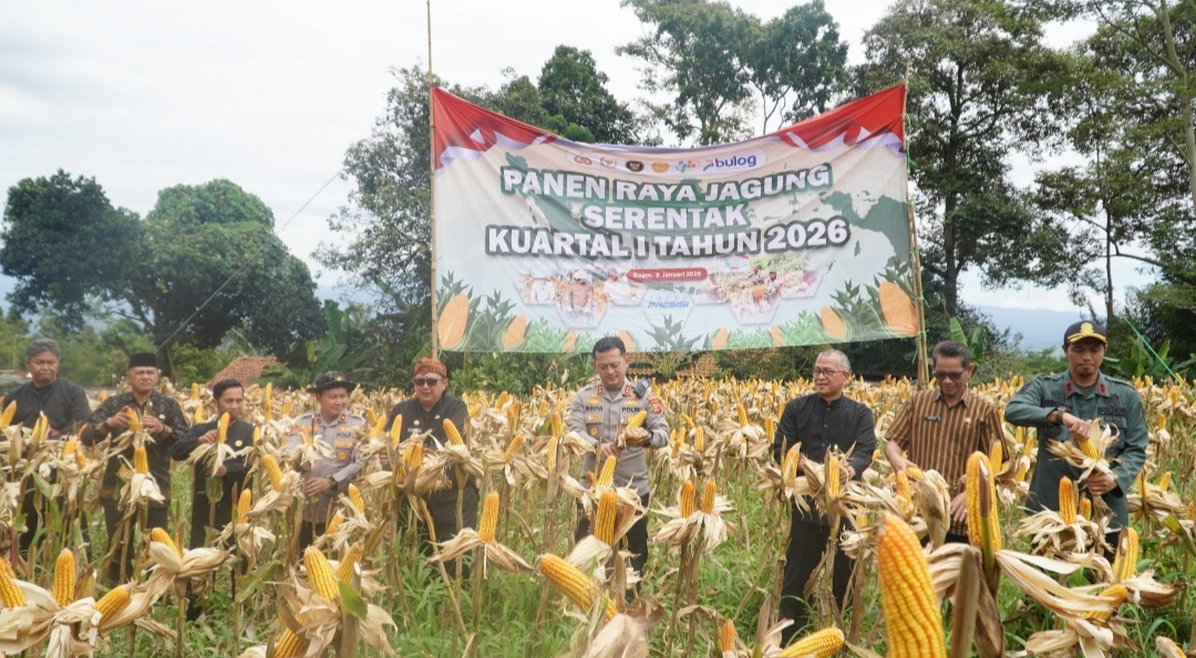 KABUPATEN BOGOR – Polres Bogor turut mendukung program ketahanan pangan nasional dengan melaksanakan kegiatan Panen Raya Jagung Serentak Kuartal I Tahun 2026, di Kampung Cidangdeur , Desa Tugu Jaya, Kecamatan Cigombong, Kabupaten Bogor, Provinsi Jawa Barat, Kamis (8/1/2026) pukul 10.40 WIB.