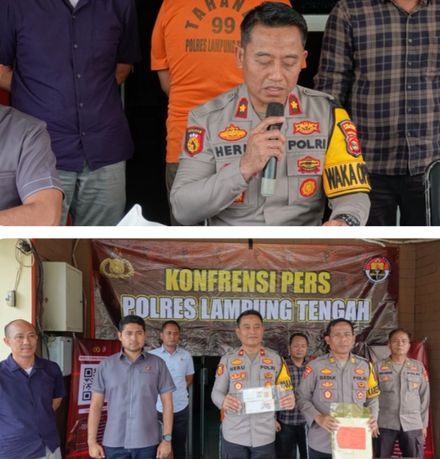 Hal ini disampaikan dalam konferensi pers yang dipimpin oleh Wakapolres Lampung Tengah, Kompol Heru Sulistyananto, S.H., M.H mewakili Kapolres, AKBP Alsyahendra, S.I.K., M.H di Mapolres setempat, pada Kamis (20/11/25) siang.
