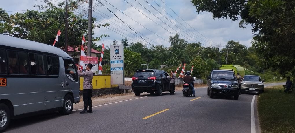 BANGKA, Riau Silip – Puluhan lembar bendera merah putih ukuran kecil, dibagikan personel Polsek Riausilip kepada para pengendara roda empat maupun roda dua.