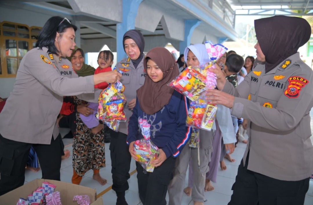 Selain menyalurkan bantuan, para Polwan juga memberikan dukungan moril serta berinteraksi langsung dengan para pengungsi guna memberikan semangat dan rasa aman di tengah situasi pasca bencana.