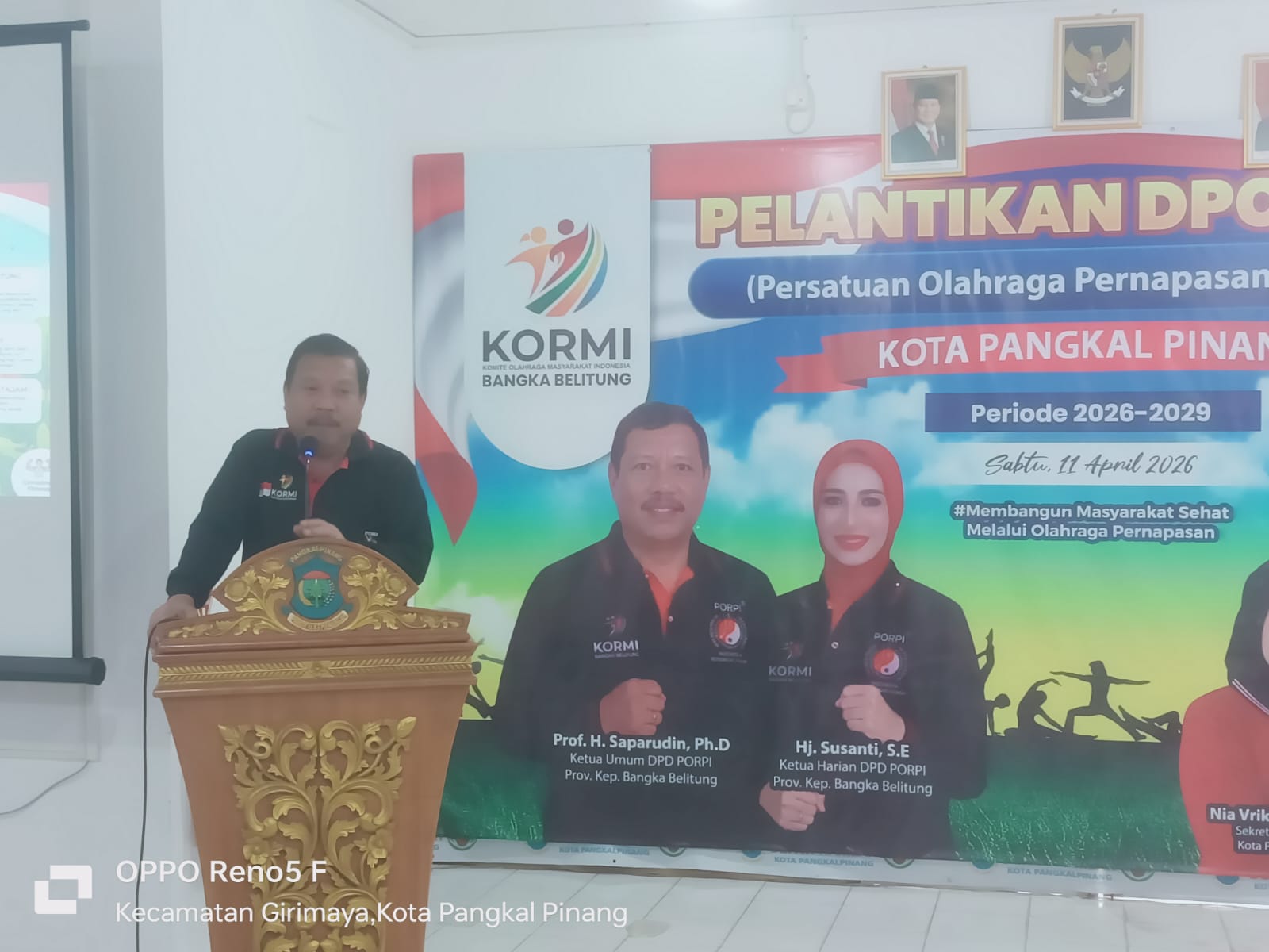 PANGKALPINANG — Wali Kota Pangkalpinang, Prof. H. Saparudin, Ph.D., menghadiri pelantikan Pengurus Dewan Pimpinan Cabang (DPC) Persatuan Olahraga Pernapasan Indonesia (PORPI) Kota Pangkalpinang periode 2026–2029 di Gedung Betason, RSUD Depati Hamzah, Sabtu (11/4/2026).