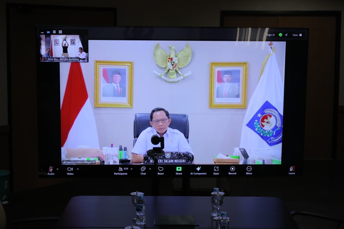 Rakor serentak pada Sabtu (30/8/2025) siang tersebut, diikuti seluruh kepala daerah di Indonesia. Untuk Provinsi Kepulauan Bangka Belitung kehadiran Gubernur Hidayat Arsani diwakili Penjabat (Pj) Sekretaris Daerah (Sekda) Babel, Fery Afriyanto, didampingi Kepala SatPol PP Babel, dan Plt. Kepala Kesbangpol Babel, via virtual, langsung dari Ruang Vidcon, lantai II Kantor Gubernur Babel.