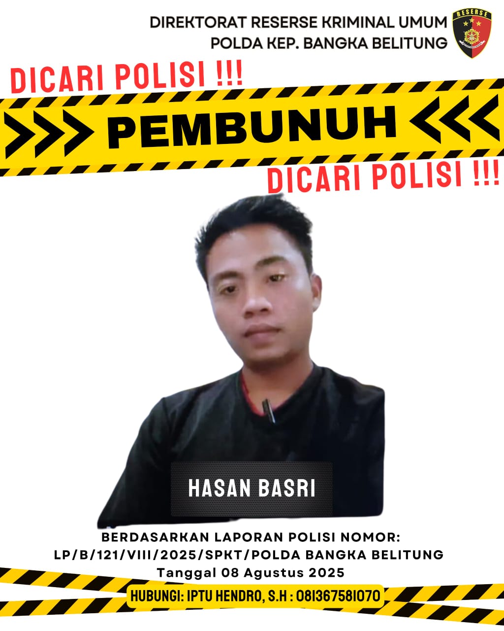 Polda Babel mengimbau masyarakat yang mengetahui keberadaan Hasan Basri untuk segera melapor. “Bagi masyarakat yang mengetahui keberadaan pelaku, mohon melapor ke tim Jatanras Polda Babel, Iptu Hendro di 0813-6758-1070 atau ke kantor polisi terdekat,” kata Arvan.