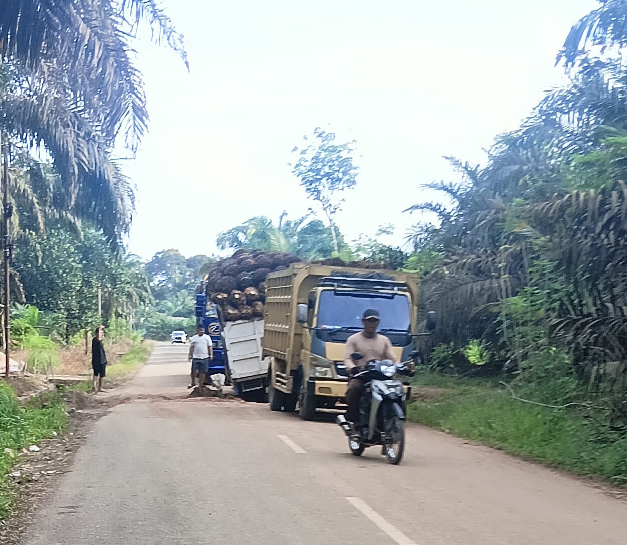 Hal itu kembali dijelaskan Saini (40) waktu melintasi jalan disana ada juga mobil pengangkut buah sawit yang tidak bisa melintas, faktor jalan yang tidak memungkinkan lagi untuk dilintasi dengan muatan yang besar.