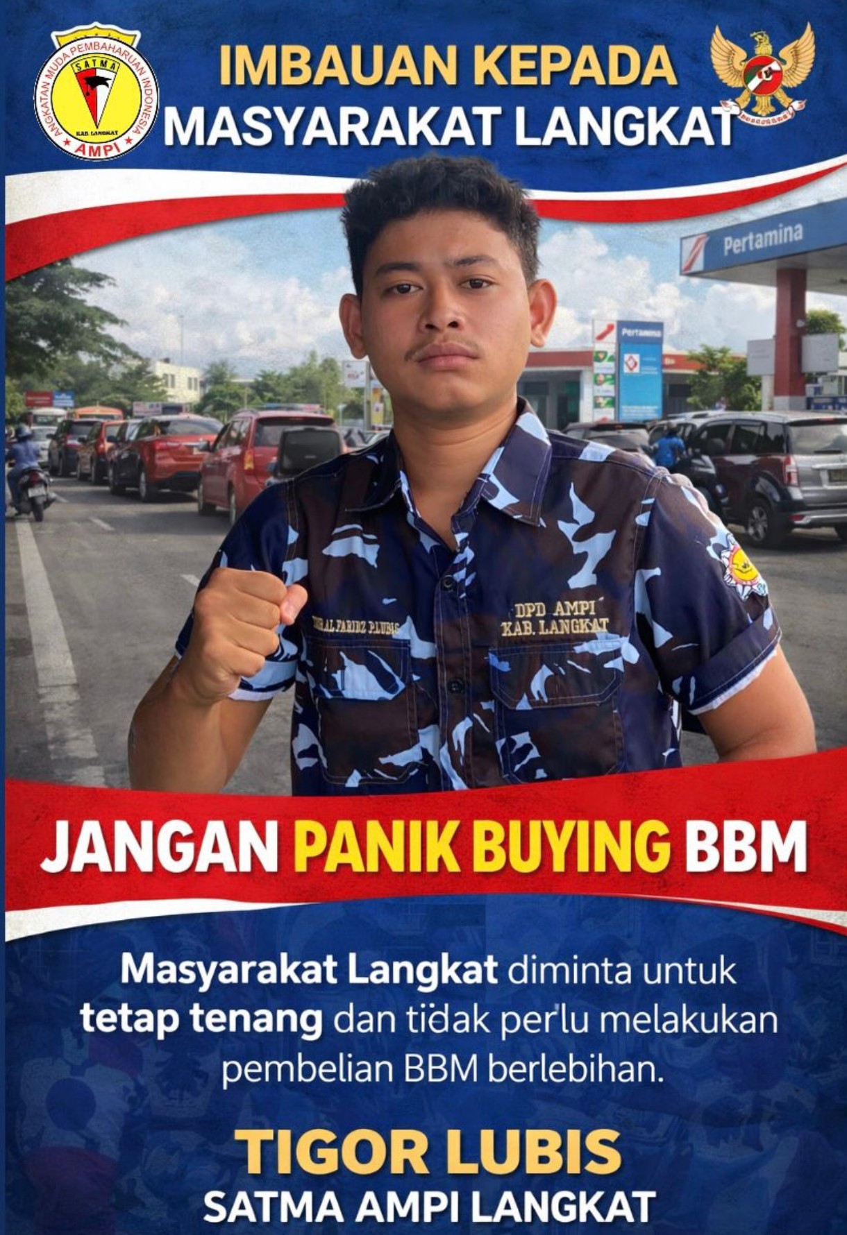 Menurut Ketua DPD SATMA AMPI Kabupaten Langkat, Tigor Alfaridz,  pembelian BBM secara berlebihan hanya akan menimbulkan antrean panjang, kepanikan di tengah masyarakat, serta dapat mengganggu distribusi BBM bagi masyarakat lainnya yang juga membutuhkan, Sabtu (7/3/2026).