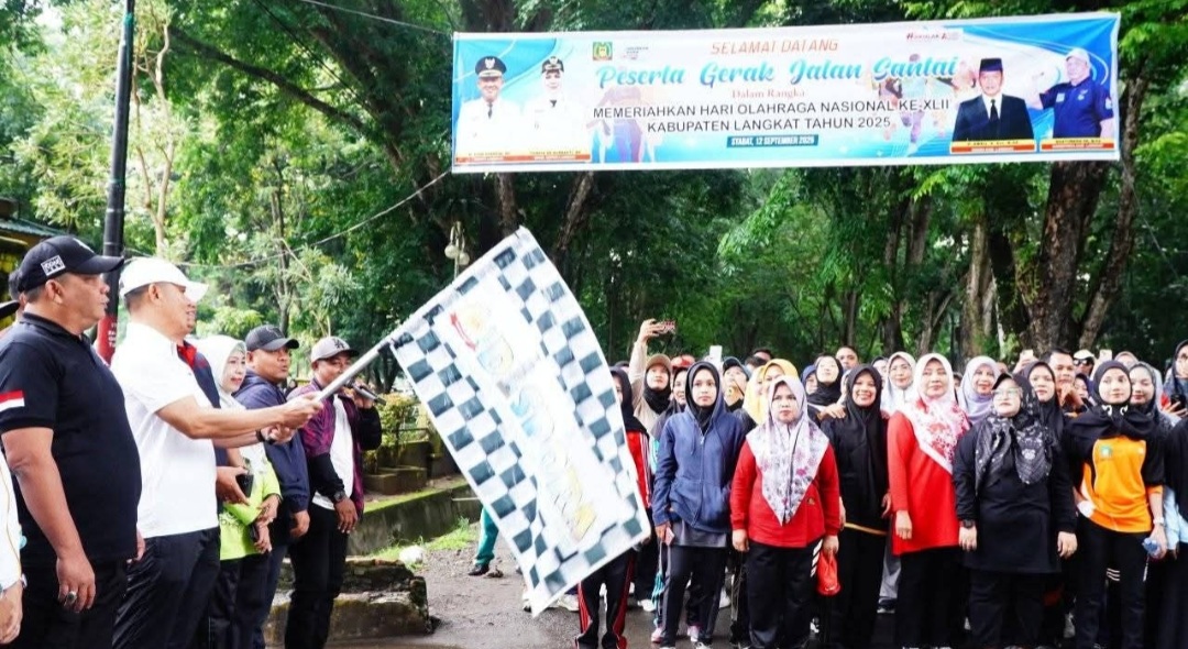 LANGKAT – Pemerintah Kabupaten (Pemkab) Langkat, Provinsi Sumatera Utara menggelar jalan santai dalam rangka memperingati Hari Olahraga Nasional (Haornas) ke-42, Jumat (12/9/2025).
