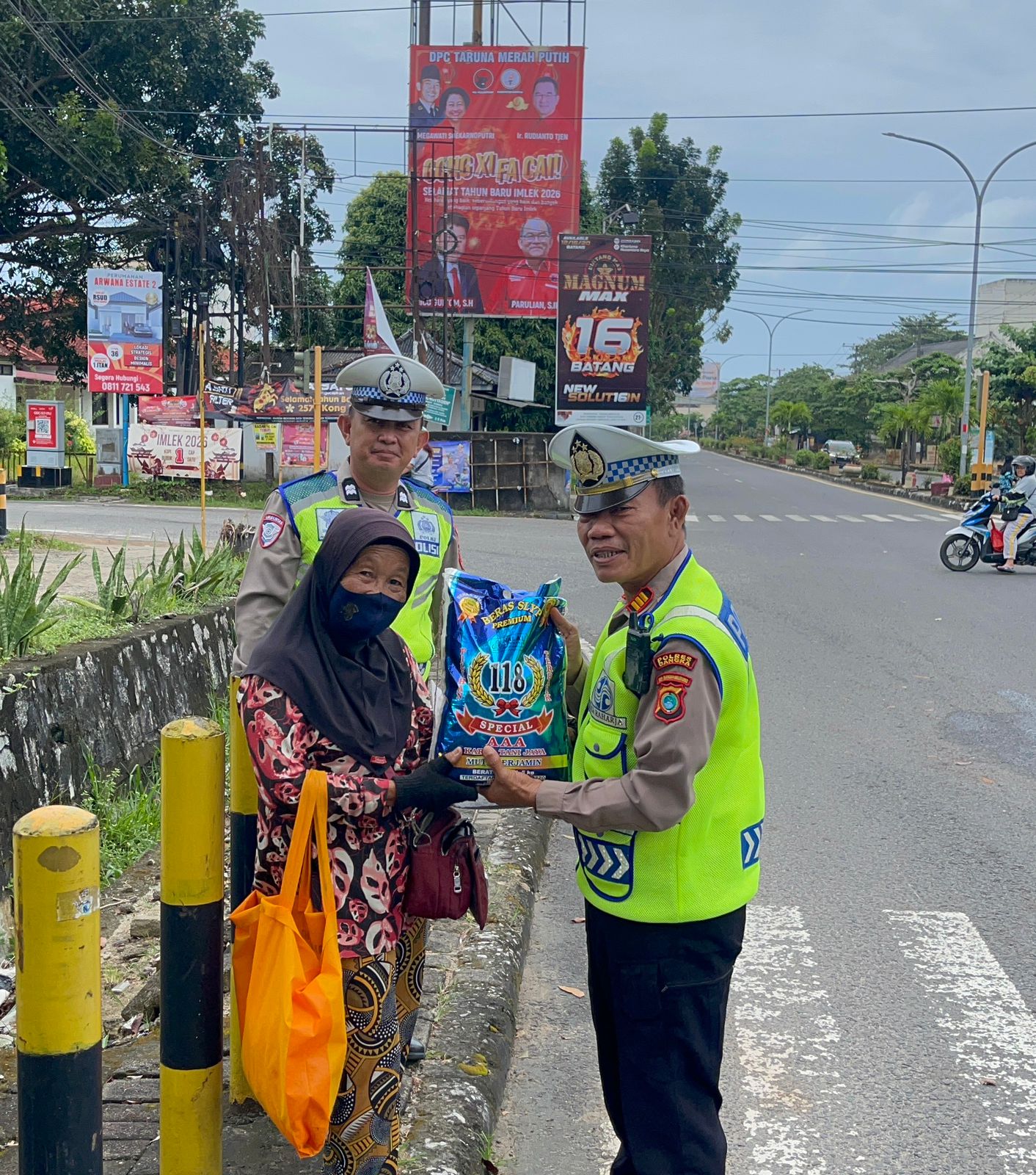 Dalam kegiatan itu, personel Satlantas membagikan bantuan berupa paket sembako kepada warga yang membutuhkan. Bantuan diberikan secara langsung dengan menyambangi masyarakat di sejumlah titik di Sungailiat.