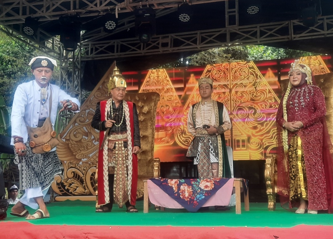 Di sepanjang jalan tersebut Kepala Desa Kemang H. Entang Suana SE., istri Hj. Yeni Rahmawati dan putranya diarak menunggang kereta kencana dan dikawal siswa-siswi dari SMA Negeri 1 Kemang dengan dandanan kostum algojo dan angkatan perang kerajaan.