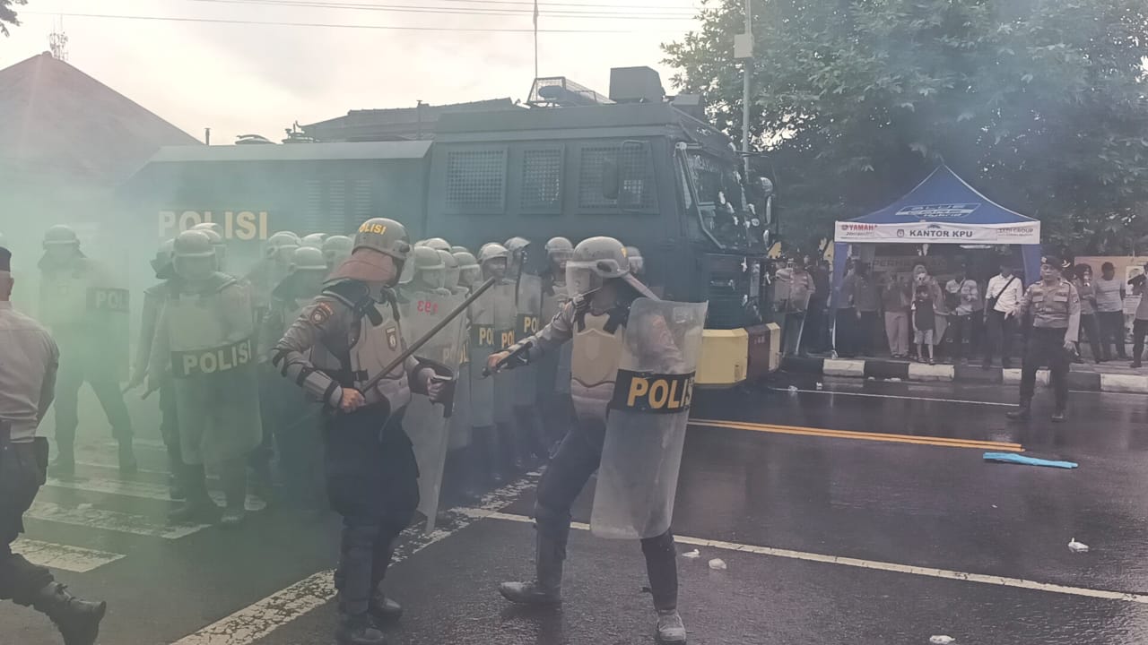 Kendaraan taktis seperti water cannon, kendaraan pengurai massa, dan tim negosiator juga diturunkan untuk menunjukkan koordinasi penuh dalam penanganan kontinjensi.