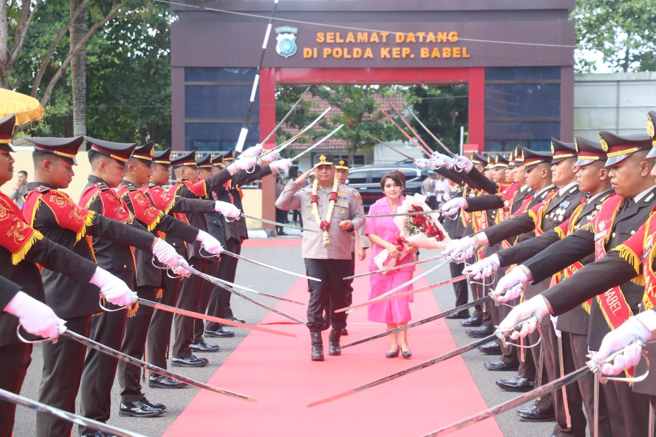 Selanjutnya, Jenderal Bintang Dua Polri ini juga menerima jajaran hormat (jarmat) sekaligus menerima laporan situasi terkini di Mapolda Babel.