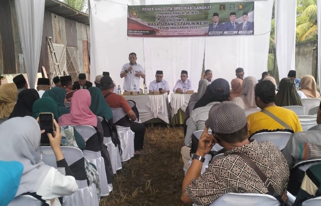 LANGKAT – Tiga Anggota Dewan Perwakilan Daerah (DPRD) Langkat laksanakan reses bersama pada masa Sidang I Tahun III anggaran 2025 di Dusun I, Desa Pelawi Selatan, Kecamatan Babalan, Kabupaten Langkat, Provinsi Sumatera, Rabu (1/10/2025).