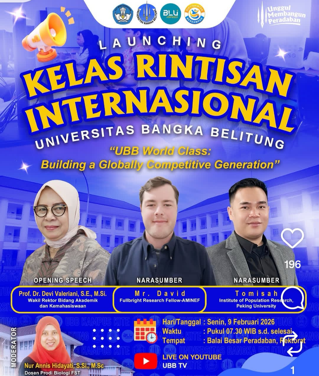 Melalui Kelas Rintisan Internasional, UBB berharap mampu mempercepat transformasi menuju universitas berdaya saing global, sekaligus menegaskan perannya sebagai institusi pendidikan yang unggul dalam membangun peradaban.