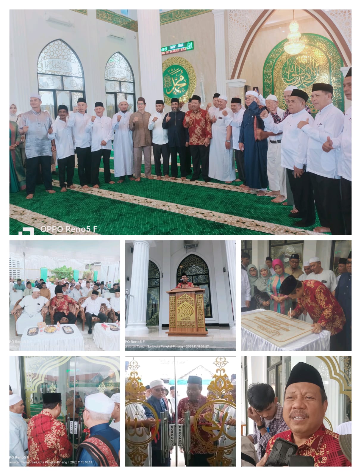 Acara peresmian berlangsung khidmat, dihadiri tokoh agama, warga sekitar, panitia pembangunan, dan jajaran Pemerintah Kota Pangkalpinang. Kegiatan ditutup dengan sesi foto bersama di halaman masjid.
