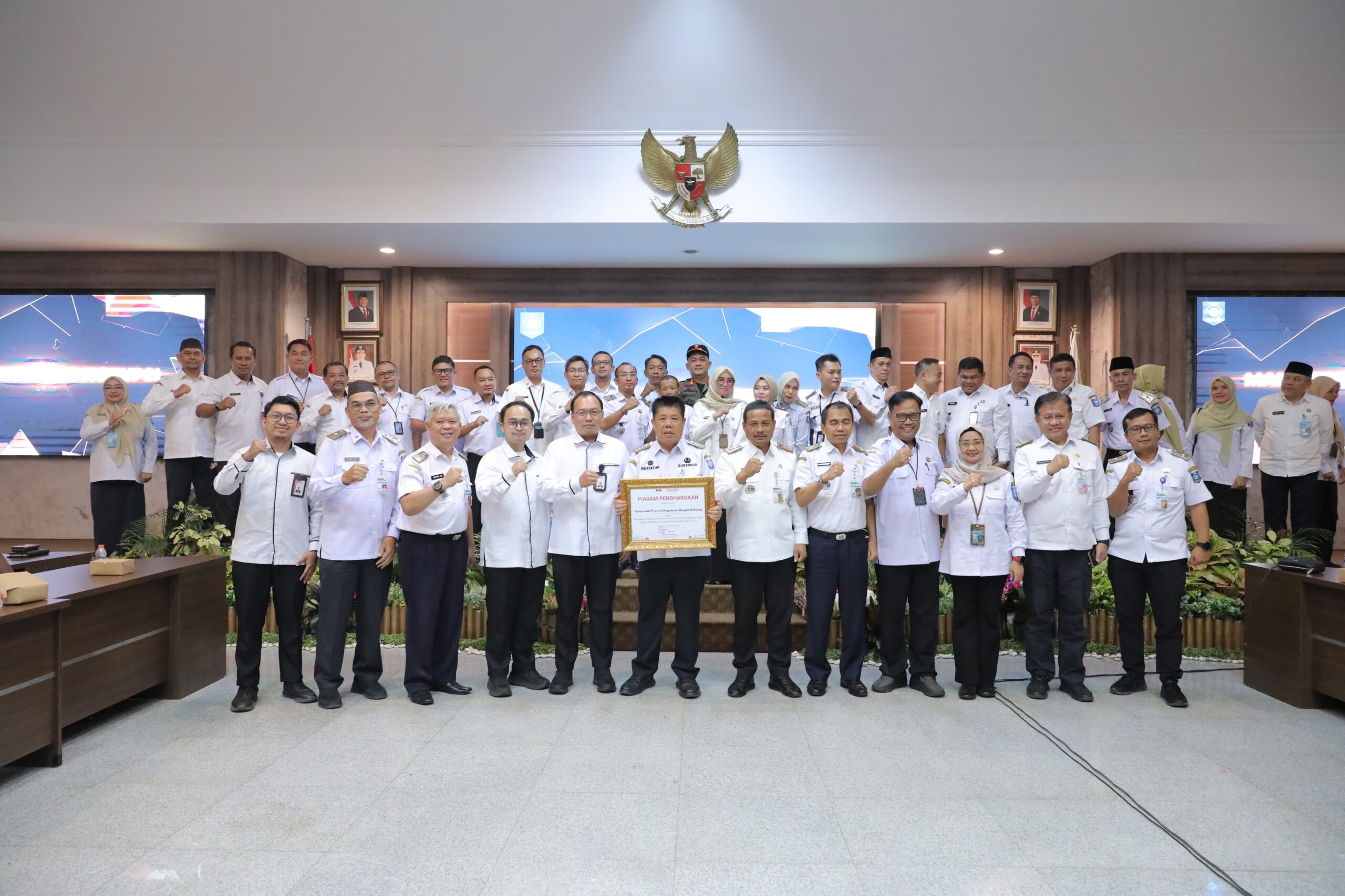 PANGKALPINANG — Pemerintah Provinsi Kepulauan Bangka Belitung (Babel) menerima piagam penghargaan dari Komisi Pemberantasan Korupsi Republik Indonesia (KPK RI). Babel ditetapkan sebagai peringkat kedua pemerintah provinsi terbaik nasional dalam upaya pencegahan korupsi atas komitmennya memperkuat tata kelola pemerintahan yang baik (good governance).